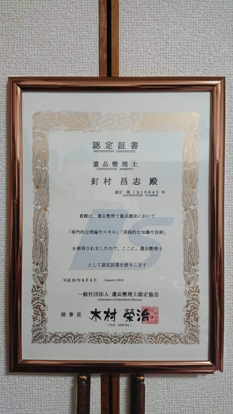 2018年8月:遺品整理士の認定証を取得し、専門性とサービスの品質をさらに高めました。